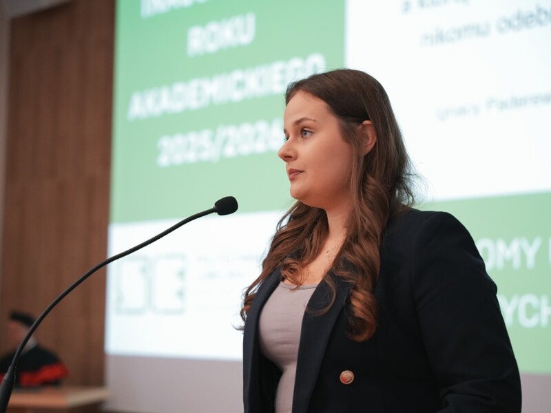 Następnie studenci rozpoczynający studia w roku akademickim 2025/2026 złożyli uroczyste ślubowanie.